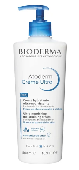 La loción corporal Atoderm Crème Ultra de Bioderma proporciona un efecto ultranutritivo e hidratante que fortalece la barrera cutánea. Se puede usar a diario y es apta para pieles de normal a seca. Su absorción es rápida y no contiene fragancia. Su composición incluye el activo Skin Protect Complex patentado por la firma para estimular la producción de ácido hialurónico y otros ingredientes ultrahidratantes como la glicerina.