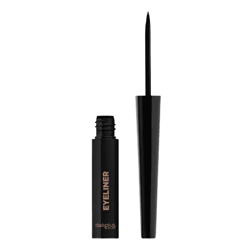 Perfilador de ojos Eyeliner Deliplus negro. Un delineador con un pincel muy preciso que deja un acabado intenso. Para poder hacer la línea en el ojo, es importante buscar un punto de apoyo.