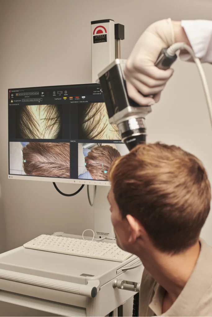 Antes de cualquier tratamiento, sea regenerativo o quirúrgico, hay un paso que determina absolutamente todo, y ese es el diagnóstico. Y aquí es donde la medicina capilar se ha vuelto casi ciencia ficción. La tricoscopia digital avanzada permite analizar el folículo con una precisión que hace unos años era impensable: densidad, grosor, miniaturización, evolución real del cabello… todo queda registrado y comparado en tiempo real.